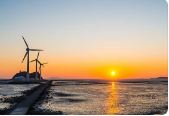 거대 풍차와 푸른 바다 배경으로 한 탄도항. ㅣ 시간을 잘 맞추어가면 물길을 걷는 듯한 사진을 찍을 수 있다.
