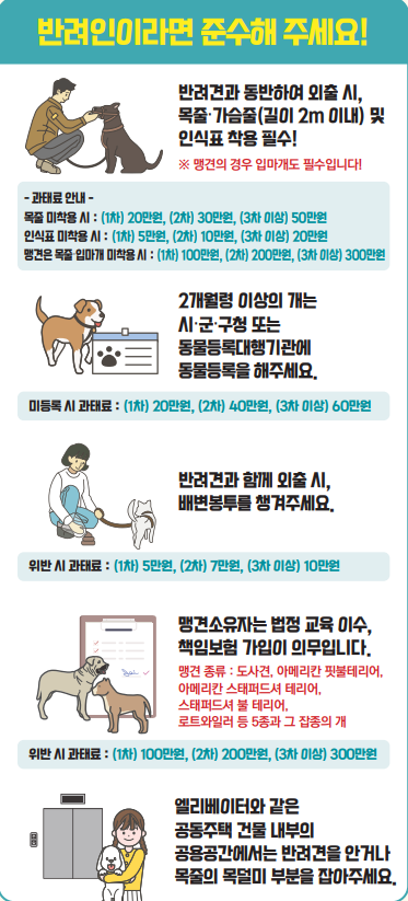 성숙한 반려동물 문화 조성을 위한 동물보호법 개정으로 반려견 소유자의 준수사항이 강화되었습니다.