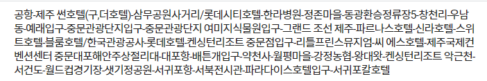 | 1111 | 공항→ 공항(구제주방면 시티투어버스 현금 : -원 첫차8시,막차16시 |