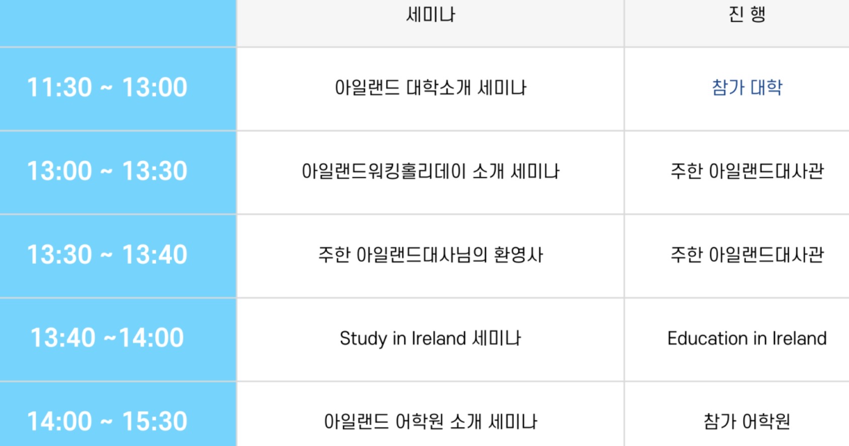 4. 아일랜드유학박람회 세미나 시간표