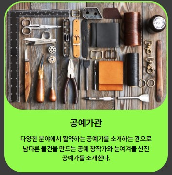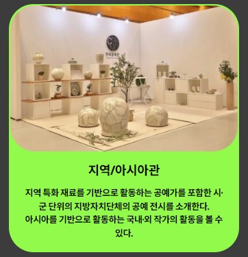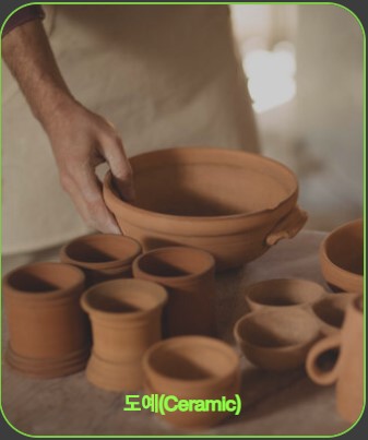 도예, 금속, 유리, 가죽, 아크릴, 종이, 나무, 섬유&텍스타일, 옻칠, 혼합재료
