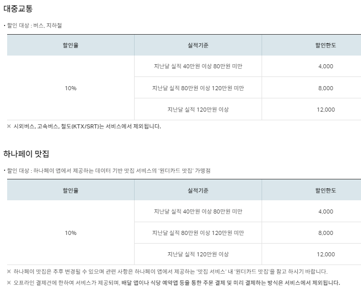 하나카드 원더카드 맞춤별 카드 혜택